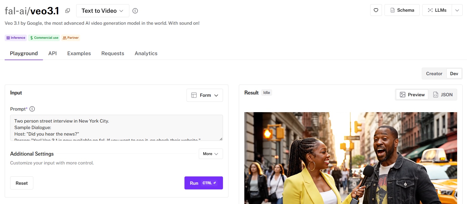 You can run Veo 3.1 through fal's API or test it in the playground at fal.