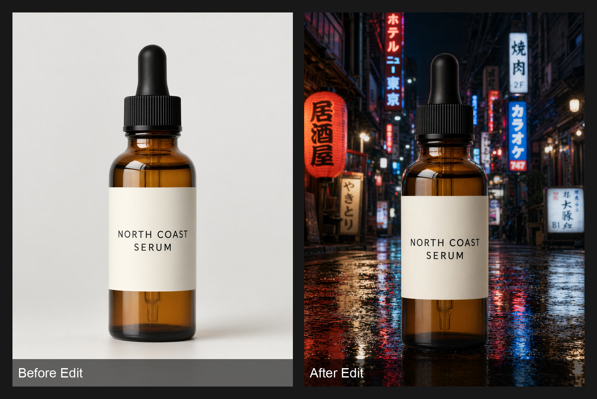 This is the edit pattern you want in practice: preserve the bottle, preserve the label, move only the background.